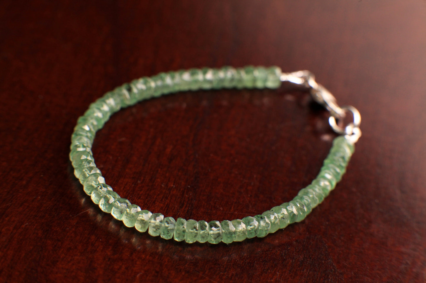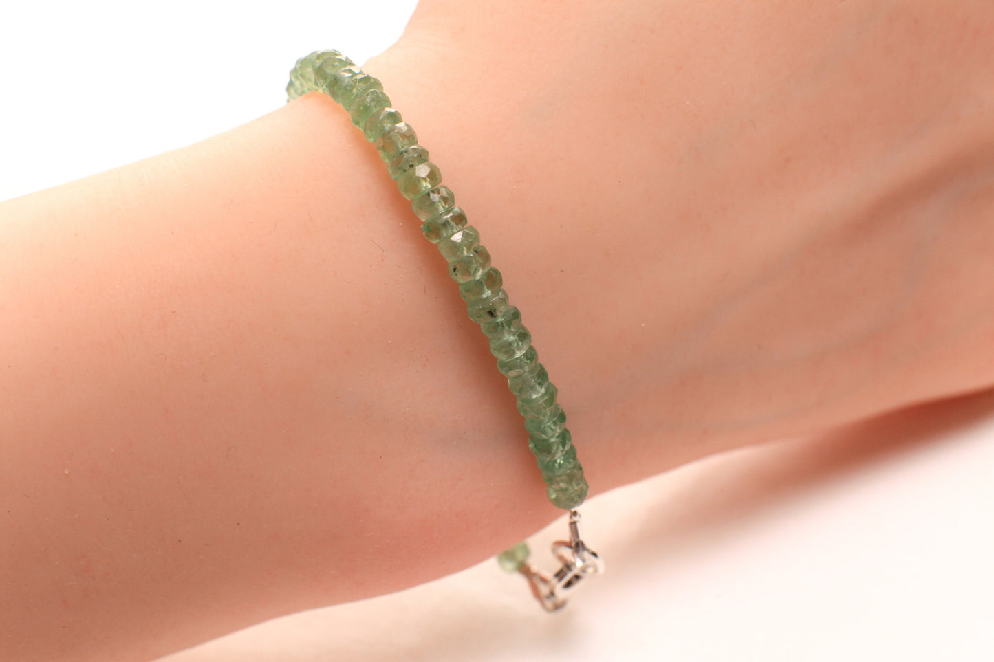 Natural Green Kyanite Bracelet , AAA Quality Mint Green Kyanite Faceted 4-4.5mm roundel 925 sterling silver bracelet 6”-10” size, healing Chakra gift