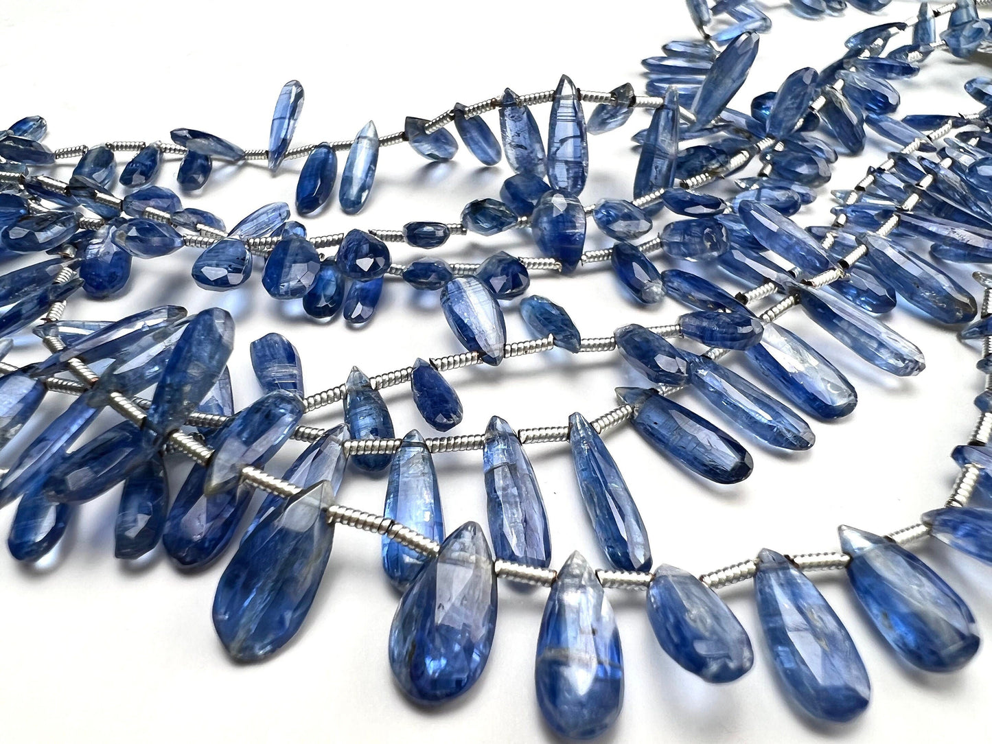 Natural Kyanite Faceted long skinny Drop 4.5x11-13mm AAA top quality Teardrop Gemstone Violet Blue Beads DIY Jewelry Making pear drop beads.