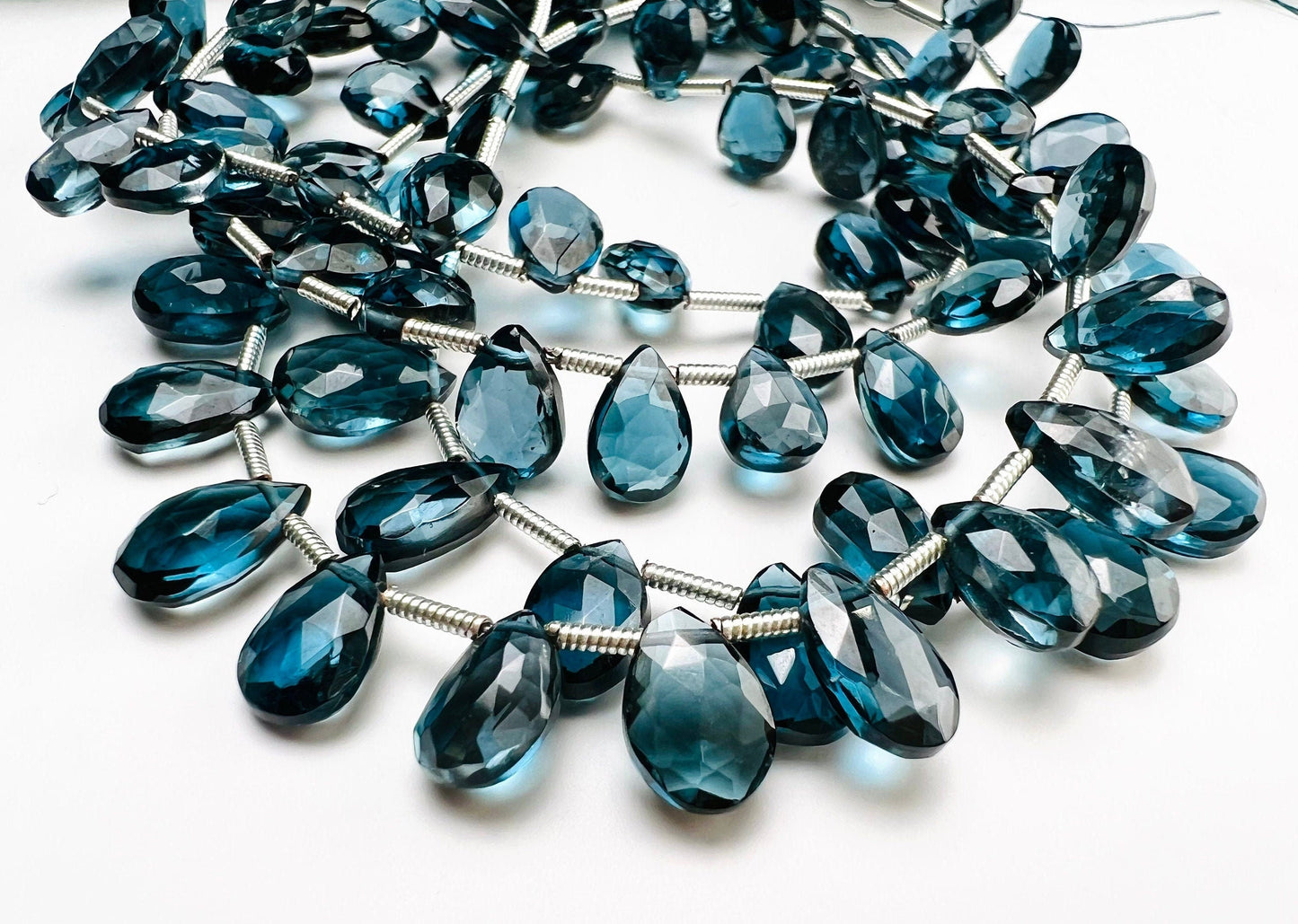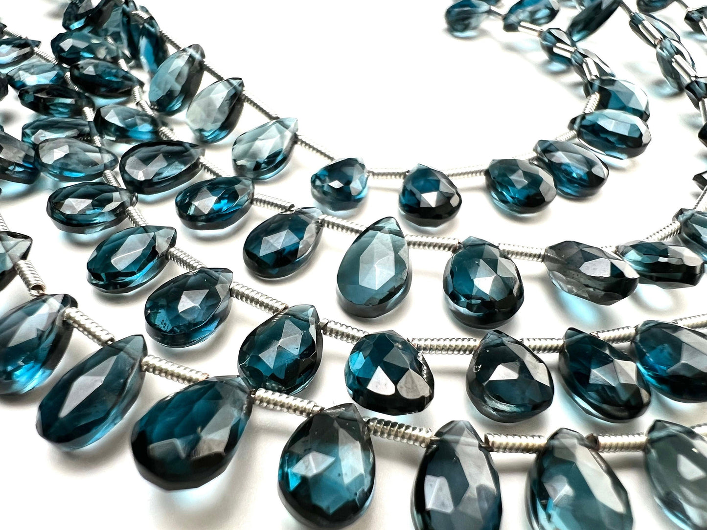 Natural London Blue Topaz Teardrop 5-6x7.5-10mm Faceted Diamond Cut Heart Shape Pear Drop, High Quality Natural London Blue Topaz,not Quartz