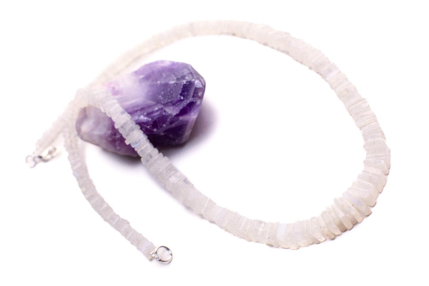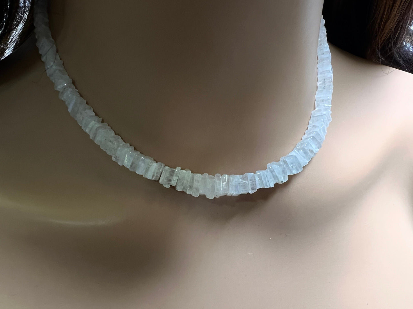 Natural Rainbow Moonstone square heishi 4-7.5mm graduated silver Necklace Healing, Energy, Gift