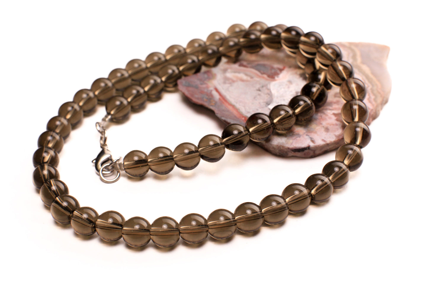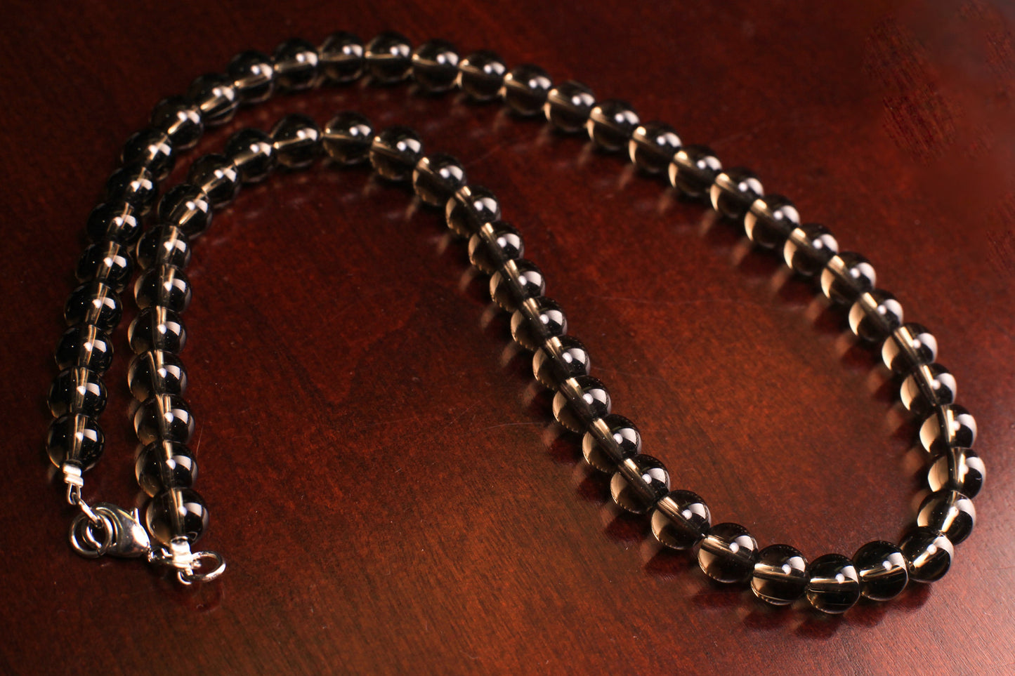 Natural Smokey Quartz 8mm Smooth Round Silver, AAA Quality smokey Quartz, Healing, Energy, Meditation Necklace