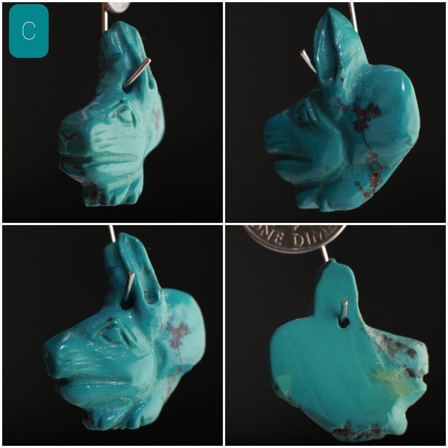 Natural Turquoise Hand Crafted Anubis Egyptian God Dog Totem, pendant ,Top Drilled for DIY Jewelry Making, Miniature Animals Collectible Figurines Vintage Sculpture, Old Stock