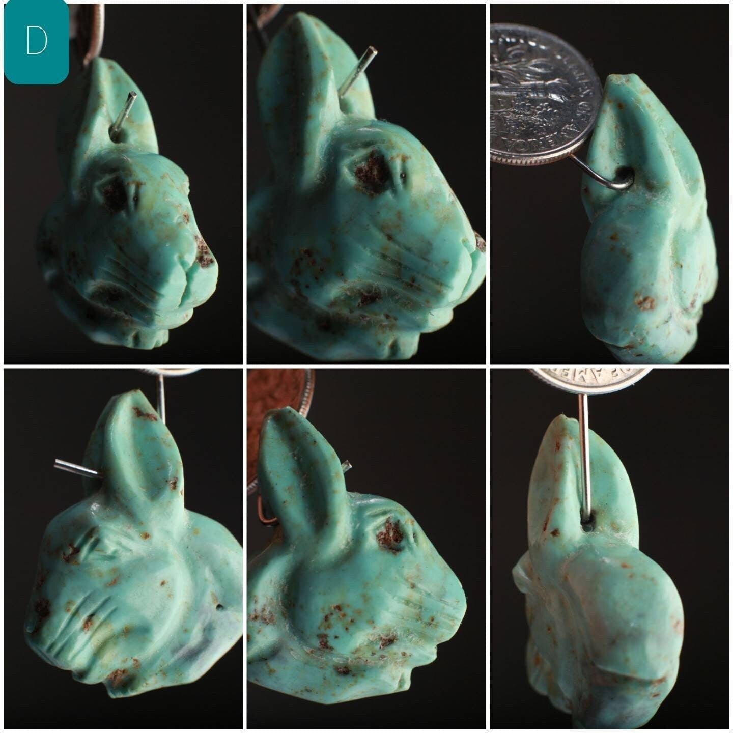 Natural Turquoise Hand Crafted Rabbit Pendant, Top Drilled for DIY Jewelry Making, Miniature Animals Collectible Figurines Vintage Sculpture, Old Stock