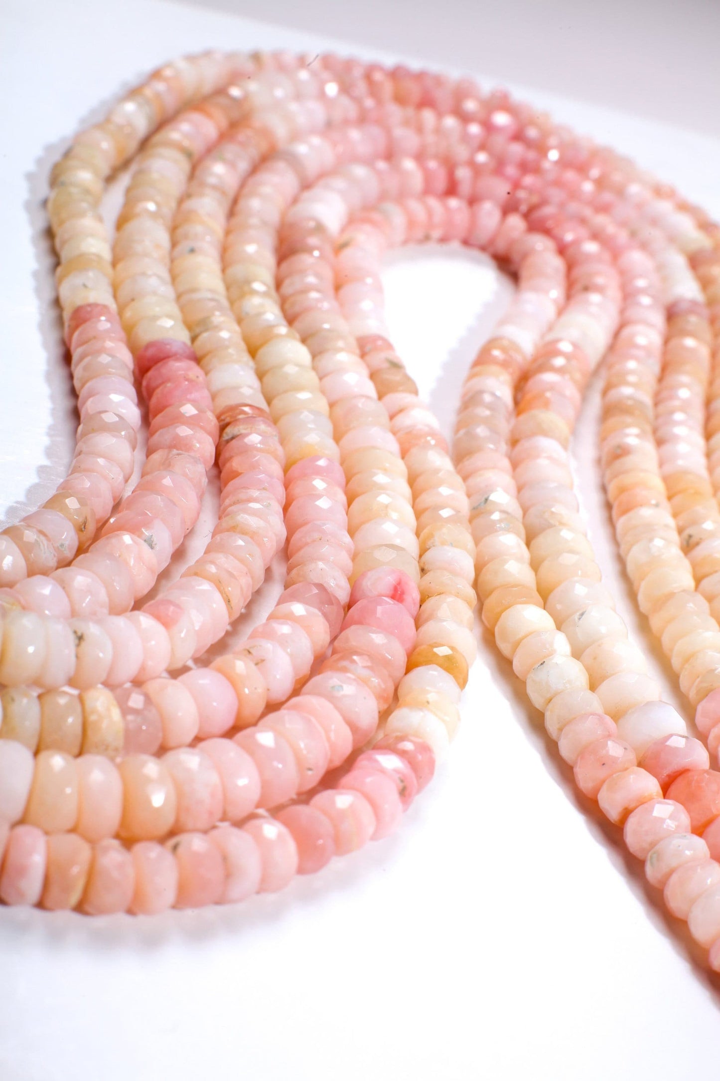 Pink Opal Rondelle, Natural Shaded Pink Peruvian Opal Faceted Roundel 4-4.5 and 7.5-8mm Jewelry Making Gemstone Beads 12.75" Strand