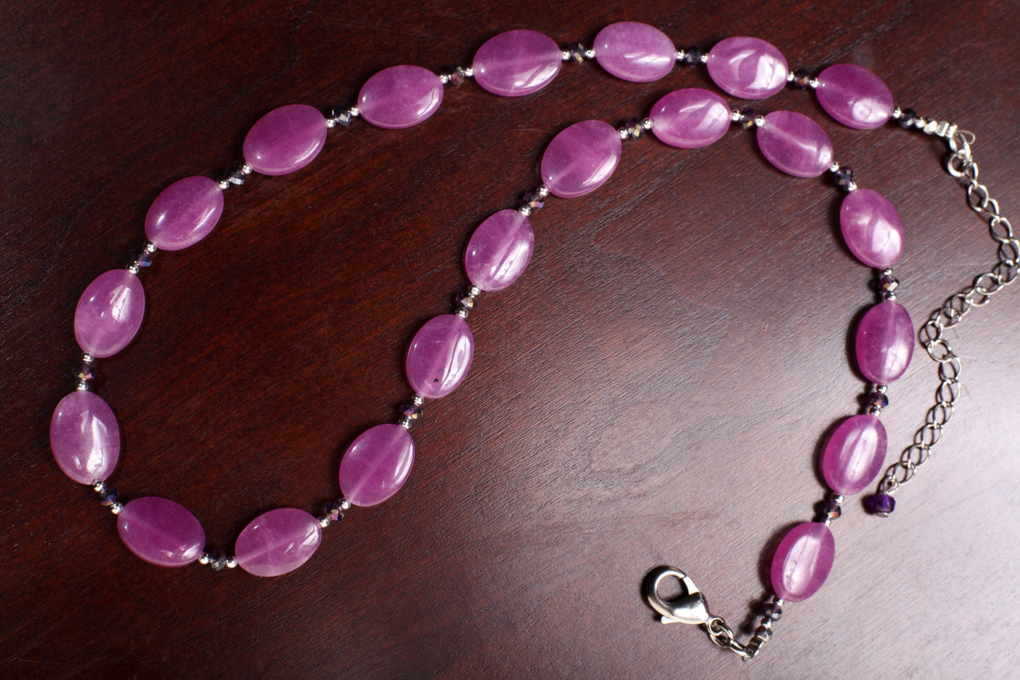 Purple orchid quartz smooth oval sterling silver , crystal accent rhodium clasp necklace, 18" plus 3" extension, spring collection, gift